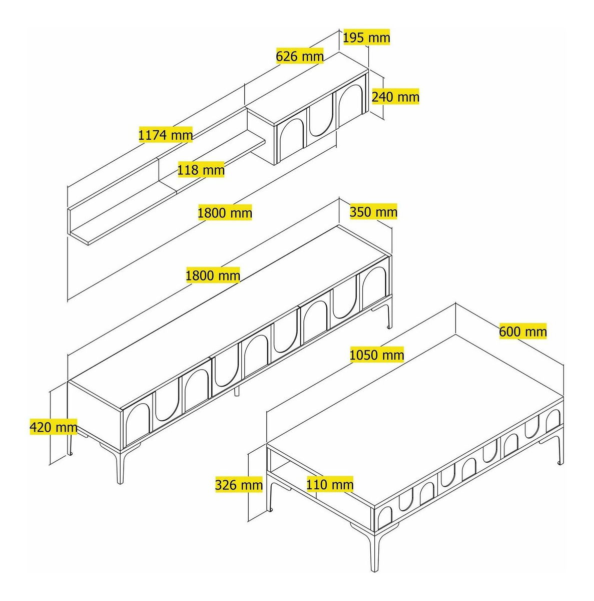 Súprava nábytku do obývacej izby Lyantela (biela + čierna)