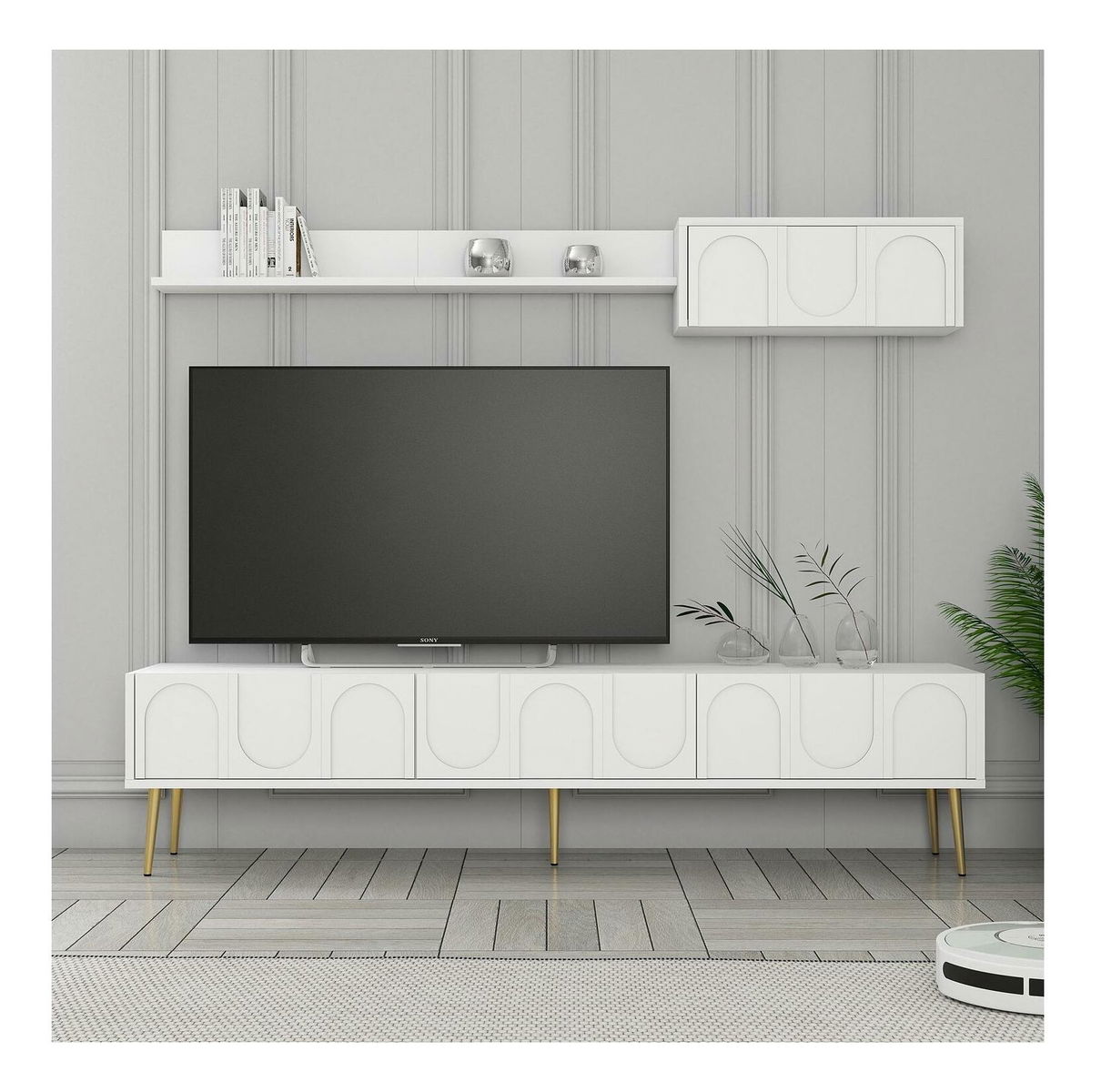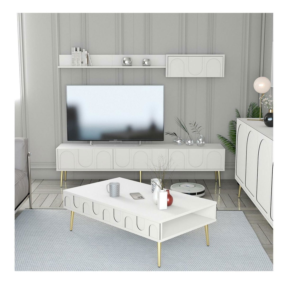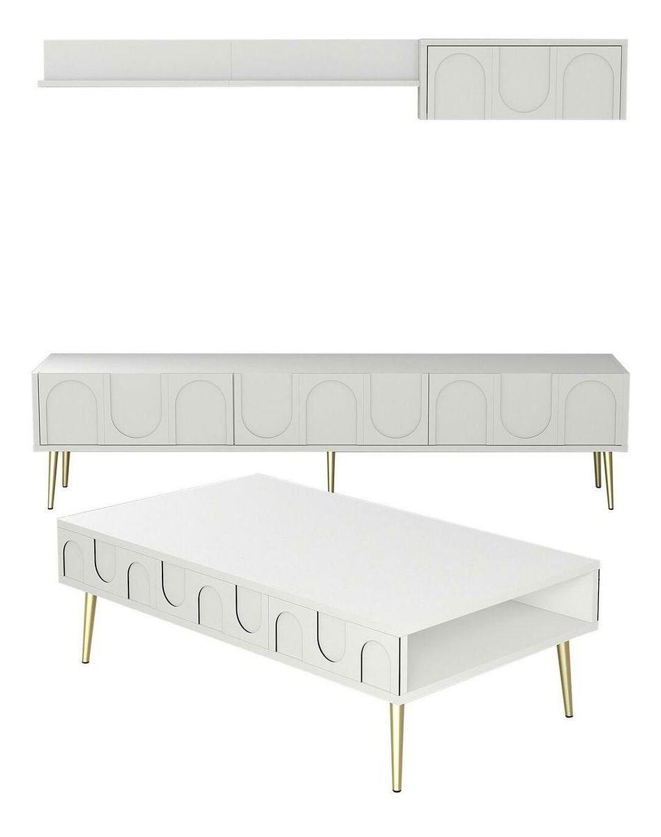Súprava nábytku do obývacej izby Lyantela (biela + zlatá)