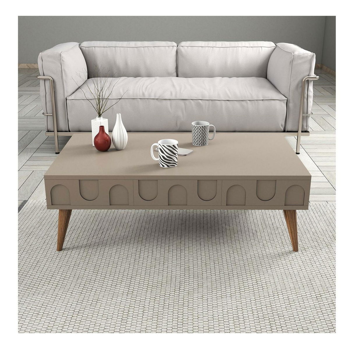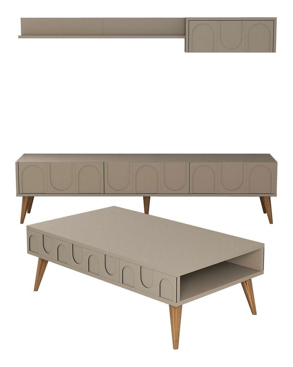 Súprava nábytku do obývacej izby Lyantela (tmavobéžová + orech)