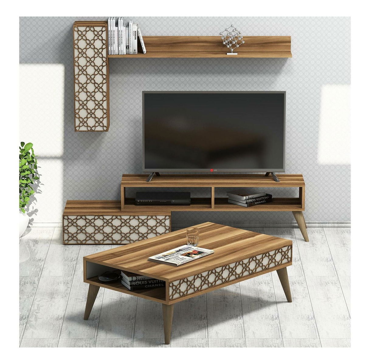 Súprava nábytku do obývačky Komite (orech + krémová)