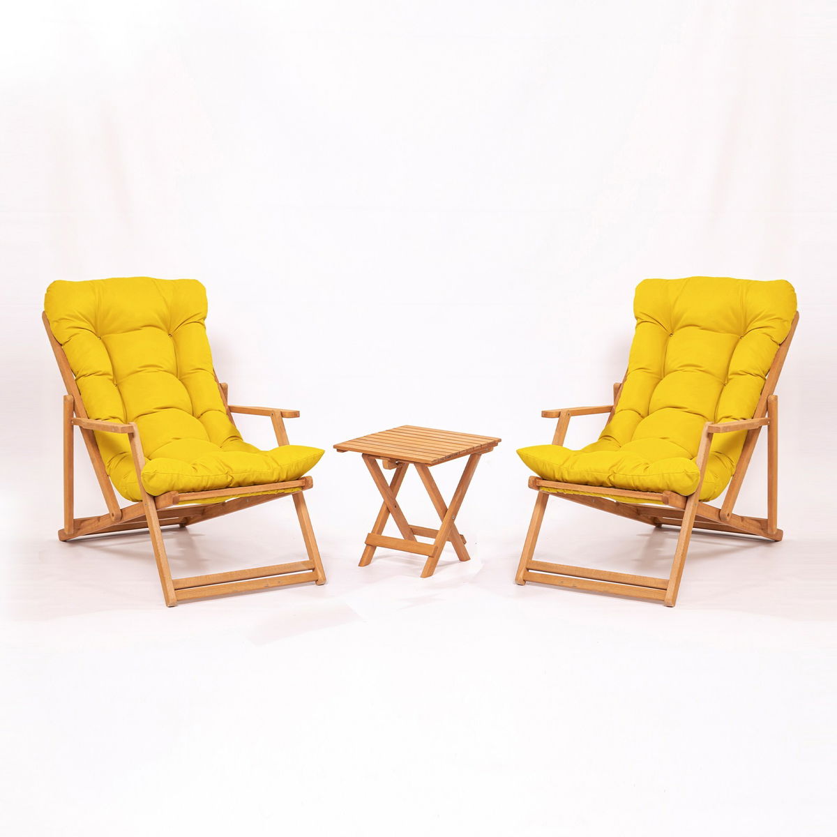Súprava záhradného stola a stoličiek (3 kusy) Mackenzie 6 (žltá + prírodná)
