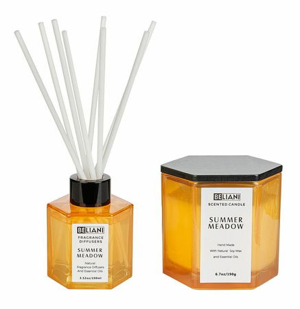 Premeňte akýkoľvek priestor na oázu pokoja a harmónie s našou vonnou sviečkou a difuzérom s tyčinkami, ktoré vás očaria osviežujúcou vôňou pripomínajúcou letnú lúku. Spoznajte čaro ekologického sójového vosku, ktorý sľubuje čisté a dlhšie horenie. Vonná sviečka v elegantnom skle s bavlneným knôtom a difuzér sa postarajú o pokojnú atmosféru a príval sviežej vône. Doplňte zariadenie svojho domova sofistikovaným spôsobom a relaxujte v absolútnom pohodlí.