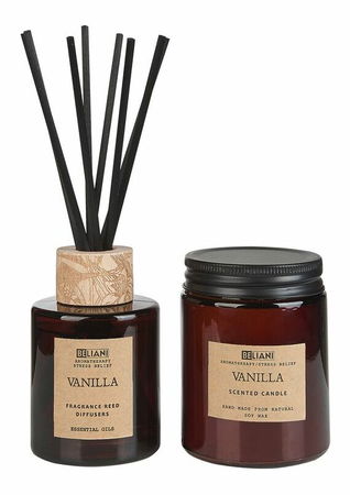 Sviečka zo sójového vosku a difuzér s tyčinkami s vôňou vanilky Ember (hnedá)