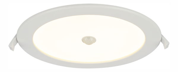 Zabudovateľné svietidlo, plast, biela, satén opál plast, DM: 210 do 220 mm, IP20, IP44, senzor: H: 2,5 m, 360 ° dosah 3-7metry, D: 220, H: 32, vrátane 1xLED 18W 230V, 1600lm, 3000K