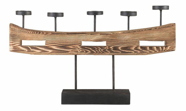 Vylepšite zariadenie svojho interiéru týmto industriálnym svietnikom. Je vyrobený z masívneho borovicového dreva, má pevný stojan s čiernou povrchovou úpravou a vrchnú časť so 4 zaoblenými kovovými držiakmi na sviečky. Tento svietnik bude štýlovým doplnkom každej obývacej izby, krbovej rímsy, spálne alebo kúpeľne.