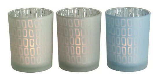 Svietnik Jolipa Na čajovú sviečku (10x10x13cm) (Sivá + Modrá) (3ks)