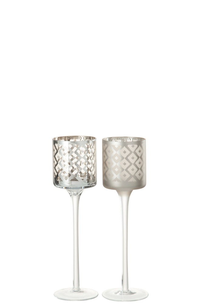 Svietnik Jolipa Na čajovú sviečku (7x7x25cm) (Strieborná) (2ks)