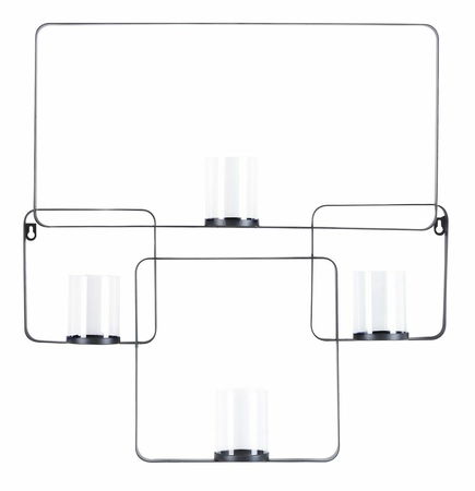 Tento nástenný svietnik je kombináciou moderného a industriálneho štýlu a je skvelým doplnkom do každého interiéru. Čierna kovová konštrukcia je doplnená sklenenými držiakmi na 4 vysoké alebo čajové sviečky. Po rozsvietení sa stane stredobodom interiéru a navodí v ňom hrejivú a útulnú atmosféru.