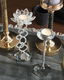Tento očarujúci svietnik je veľmi elegantným doplnkom do interiéru. Štíhly dizajn so stabilným podstavcom je doplnený maličkými trblietavými čiastočkami. Kovové prvky mu dodávajú stabilitu a jeho vrchná časť pripomína diamant. Svietnik je perfektnou voľbou do interiérov v klasickom, elegantnom či vintage štýle.