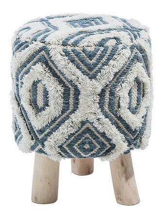 Dekoratívna taburetka, ktorá zútulní akúkoľvek obývaciu izbu zariadenúv rustikálnom alebo škandinávskom štýle. Štruktúra vlneného čalúnenia vnesie príjemný pocit tepla a útulnosti do každého priestoru. Huňatý geometrický vzor dopĺňajú hrubé drevené nohy z eukalyptového dreva v prírodnom svetlom odtieni. Táto taburetka sa stane ozdobou každého moderného alebo tradičného interiéru.