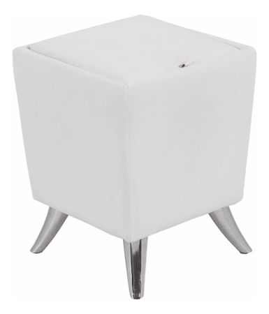 Elegantná taburetka Dars s čalúnením z ekokože a chrómovými nožičkami. Taburetka má úložný priestor.