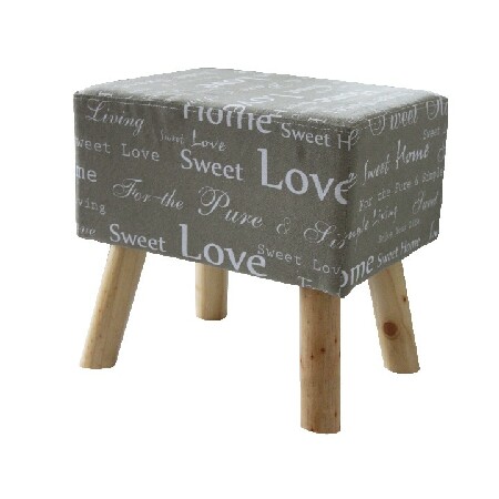 Taburetka so štyrmi drevenými nohami a látkou s potlačou. Hodí sa do moderných dizajnových bytov. Dá sa využiť ako doplnok k sedačkám, ako ďalšia alternatíva na sedenie a počas vášho relaxu si na ňu pohodlne vyložíte nohy.