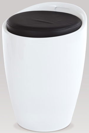 Taburetka bielej farby s odnímateľným sedákom v čiernej farbe. Obsahuje úložný priestor.