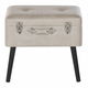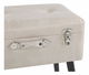 Táto taburetka inšpirovaná vintage tvarmi dokonale zvýrazní interiér v modernom, tradičnom aj glamour štýle. Je čalúnená béžovou umelou kožou, ktorú zvýrazňujú ozdobné gombíky, lesklé strieborné spony a štýlová rukoväť. Elegantné nohy dokonale dopĺňajú celkový dizajn tejto taburetky a dodávajú mu minimalistický charakter. Taburetka sa dá otvoriť rovnako ako skutočný kufor a poskytuje dostatok úložného priestoru na všetky drobnosti.