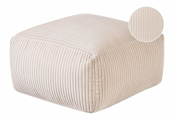 Táto univerzálna taburetka sa hodí do moderných aj tradične zariadených interiérov. Dizajn v tvare kocky z pevného menčestrového materiálu v béžovej farbe zapadne do akéhokoľvek interiéru. Vďaka svojmu nadčasovému vzhľadu a všestrannému využitiu skvele poslúži ako príručný stolík, extra miesto na sedenie alebo podnožka a veľmi rýchlo sa stane neodmysliteľnou súčasťou vašej obývacej izby.