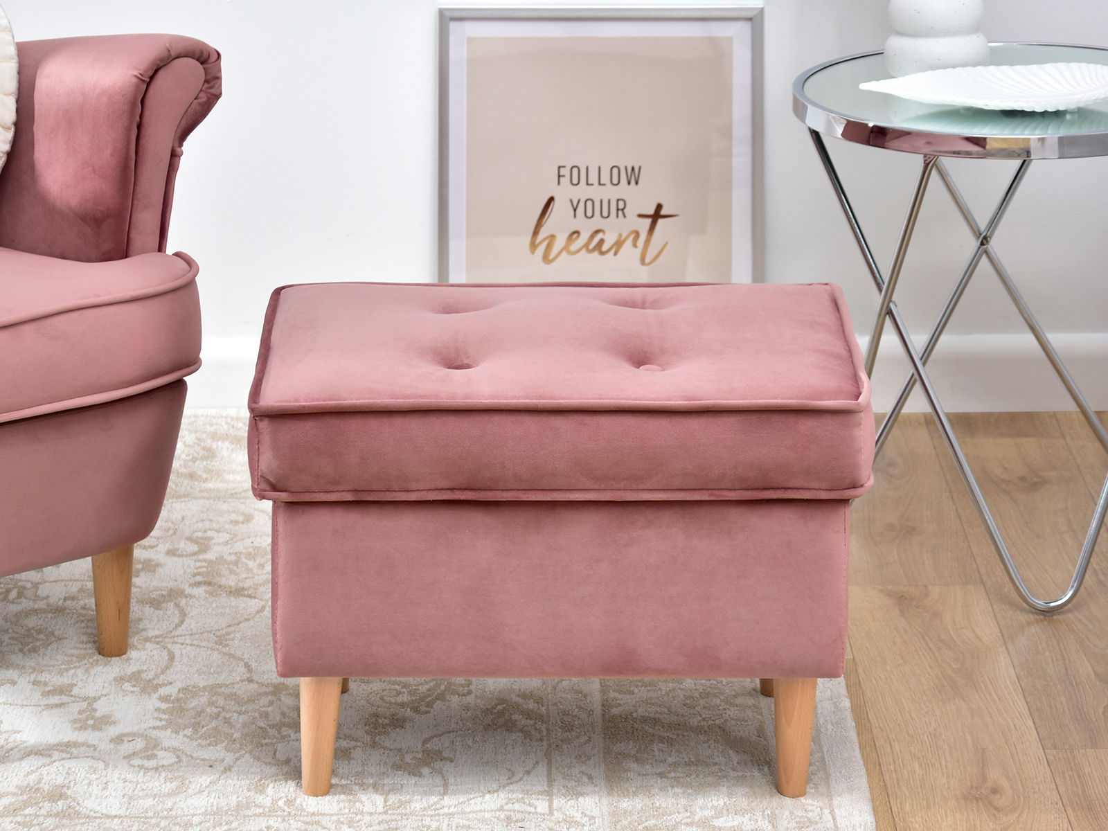 Taburetka Muriera (pastelová ružová + orech)