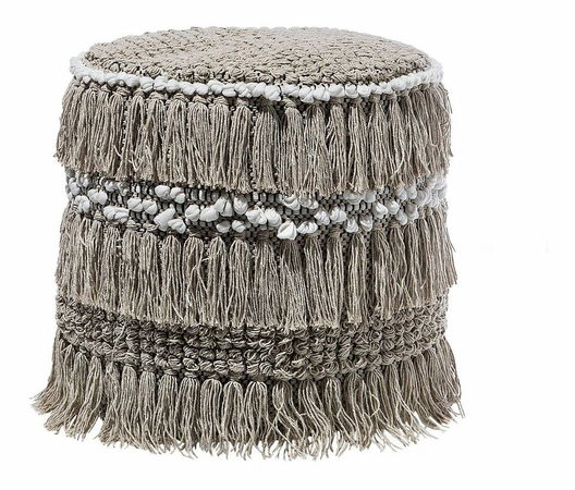Tento výnimočný kúsok v marockom štýle dokáže vylepšiť zariadenie každej miestnosti. Vrstvená textúra, vyrobená z kvalitnej 100 % bavlny, vyniká ručne vyrobeným vzorom s elegantnými strapcami. Zemitý béžový odtieň taburetky rozjasní každý tmavý interiér a vnesie doň bezstarostnú atmosféru. Či už ju použijete ako dizajnový doplnok v predsieni, ďalšie miesto na sedenie, podnožku alebo stolík na knihy, táto taburetka zaplaví celú miestnosť ležérnou bohémskou atmosférou.