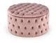 Táto glamour taburetka vyniká svojim okrúhlym tvarom a je bez nožičiek, čo jej dodáva moderný a plynulý vzhľad. Čalúnená je luxusnou velúrovou tkaninou, ktorá zvýrazňuje jej elegantný charakter. Okrem toho ponúka praktický úložný priestor pod sedadlom, ideálny na uschovávanie rôznych predmetov, čím šetrí priestor a udržuje poriadok v miestnosti. Táto taburetka je perfektným doplnkom do štýlových interiérov, kde kombinuje funkčnosť s výrazným estetickým prvkom.