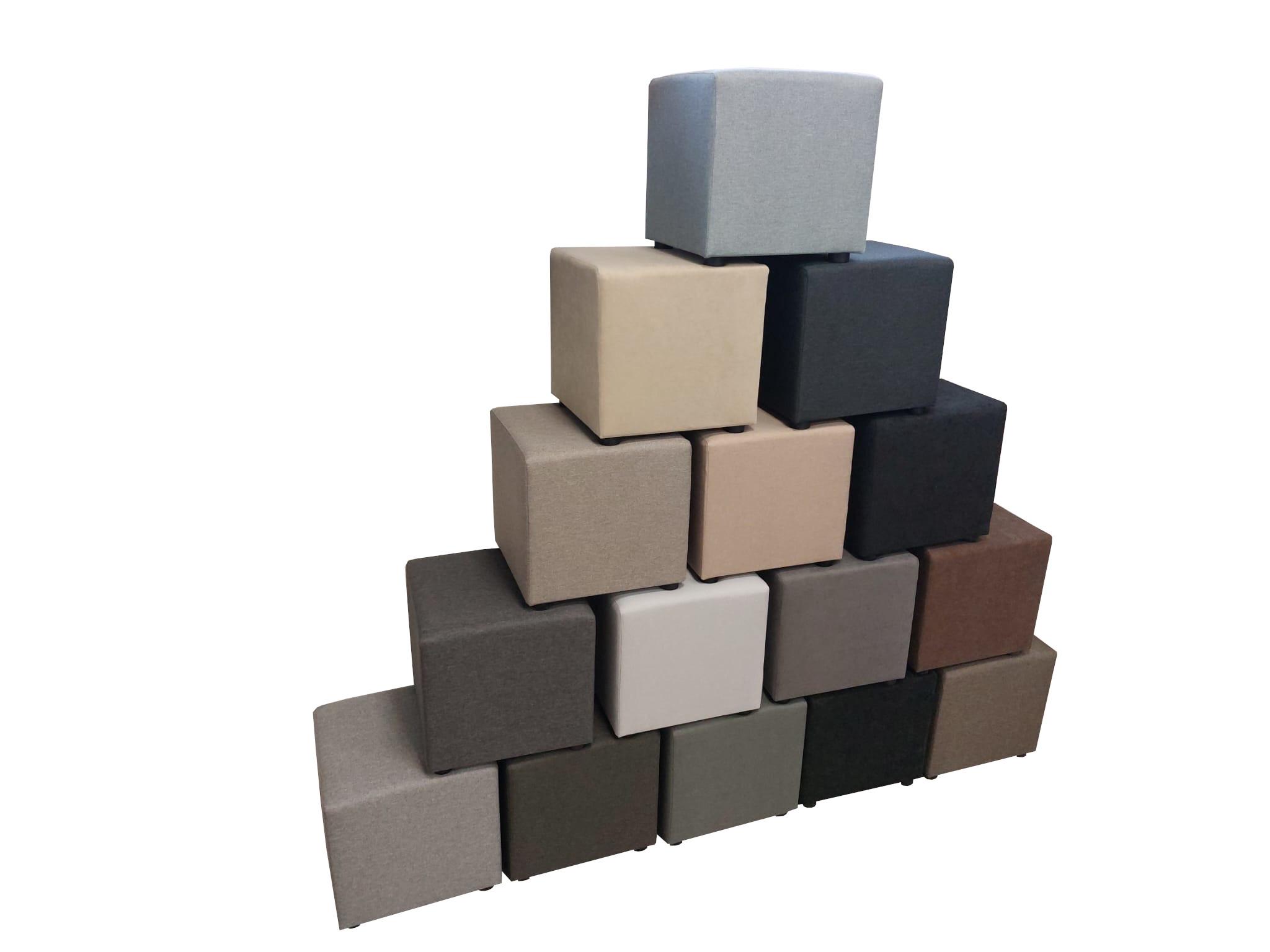 Taburetka trochu tvrdá, ale pekná šedá kocka.
