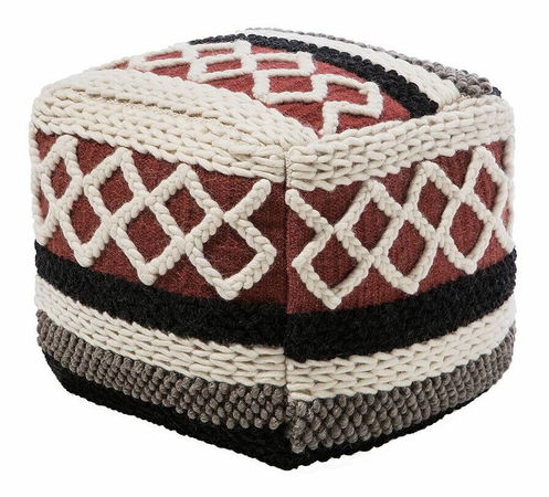 Skrášlite si domov touto boho taburetkou v teplých neutrálnych odtieňoch s kontrastnými textúrami. Je vyrobená z vlny a bavlny a má výrazný pletený vzor, ktorý svojou jemnou farebnou paletou doplní zariadenie interiéru v pobrežnom štýle. Táto veľkoryso vystužená taburetka si zachová svoj tvar vďaka hypoalergénnej výplni z polystyrénového granulátu. Stabilnú a zároveň mäkkú taburetku možno použiť ako odkladací stolík, podnožku alebo konferenčný stolík.