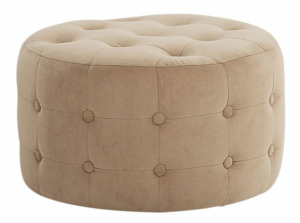 Krásna okrúhla taburetka v pieskovobéžovom prevedení s klasickým prešívaním s gombíkmi, ktorá sa hodí do každého moderného či tradične zariadeného interiéru. Zamatové čalúnenie je neuveriteľne jemné a zároveň odolné voči opotrebovaniu, ľahko sa čistí a udržiava. Táto taburetka je vhodná ako doplnok k pohovke v podobnom štýle, ale možno ju použiť aj ako trendové miesto na sedenie v obývacej izbe či spálni.