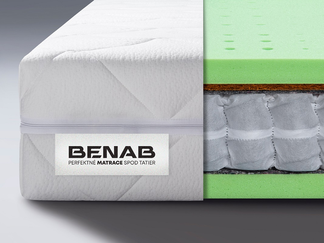 Taštičkový matrac Benab Seven Zone Ergonomic 195x90 cm (T3/T4) je vysoko kvalitný ortopedický matrac s 23 cm výškou. Matrac má 7-zónové taštičkové jadro, ktoré dokonale kopíruje tvar ľudského tela. Jadro je zložené z malých samostatných pružiniek v tvare včelieho plastu a navyše obsahuje 7 zón tvrdosti, čo zvyšuje jeho ortopedický efekt. Matrac obsahuje vynikajúce prevzdušnenie jadra cez špeciálny odvetrávací systém, čím zároveň nedochádza k prehriatiu organizmu. Matrac má jednu stranu stredne tvrdú (T3) a druhú stranu tiež stredne tvrdú (T4). Matrac má dvojitú tuhosť jednostranným použitím kvalitnej kokosovej dosky. Odporúčaný rošt je pevný. Matrac má záruku 3 roky. Matrac sa môže prať na 60 stupňov, má nosnosť až 120 kg. Matrac je vybavený systémom zón Fyzio 7 a snímateľným poťahom s riešeným zipsom pre jednoduché snímanie poťahu. Poťah je vyrobený z vysoko kvalitnej látky Tencel, ktorá je charakteristická svojou vysokou vzušnosťou a odvodom vlhkosti. Tencel je prirodzene antibakteriálny a antiroztočový. Poťah obsahuje certifikovaný OEKO-TEX standard a je možné ho prať do 60 stupňov. Matrac obsahuje HR studenú perforovanú penou a prírodné kokosové vlákno. Pena je s hustotou HR 38 kg/m3, kokosová vrstva má hmotnosť 1300 gr/m2 a taštičkových pružín je 370 ks/m2. Poznámka: Farba peny sa môže líšiť od vyobrazenia a nie je dôvodom reklamácie. Matrac je možné vyrobiť aj v atypickom rozmere podľa Vašich predstáv.