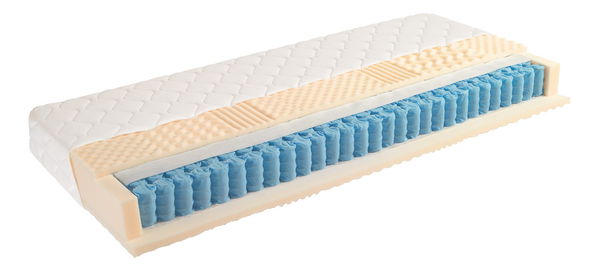 Taštičkový matrac Zlata Plus má systém pružín (6 závitov) samostatne zašitých v textilných vreckách (377 kusov pri rozmere 200 x 90 cm). Každá taštička reaguje individuálne a dynamicky sa prispôsobuje tvaru a záťaži jednotlivých partií (tzv. bodová elasticita). Optimálne rozloženie hmotnosti. Vonkajšie profilové dosky matraca sú z kvalitnej PUR peny.
