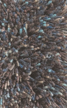 Moderný, viacfarebný huňatý koberec ladený do tmavohneda s vlasmi v čiernej, sivej, hnedej, modrej farbe. Vynikajúci doplnok do Vašej spálne.