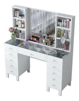 Ku kozmetickému stolíku patria rozhodne aj úložné priestory. Mal by mať minimálne dve zásuvky, ktoré využijete na uskladnenie všetkých drobností. Niektoré modely majú dokonca aj skrinky. Tie sú praktické, pretože do nich uložíte omnoho viac vecí, ako do zásuviek.