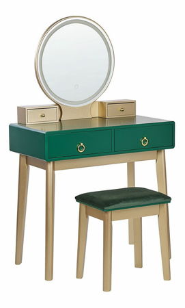 Vytvorte si jedinečný kozmetický kútik pomocou štýlového toaletného stolíka s elegantným vzhľadom. Súčasťou stolíka je zrkadlo so zabudovanou LED diódou, ktorá má tri režimy, vďaka ktorým bude líčenie precíznejšie a jednoduchšie. Do 4 priestranných zásuviek sa zmestí nielen kozmetika, ale aj šperky, pretože jedna priehradka má aj praktický organizér na prstene, náramky alebo náušnice. Pohodlne sa posaďte na stoličku s elegantným sedadlom, ktorá krásne ladí s dizajnom stolíka, a užívajte si každodennú kozmetickú rutinu.