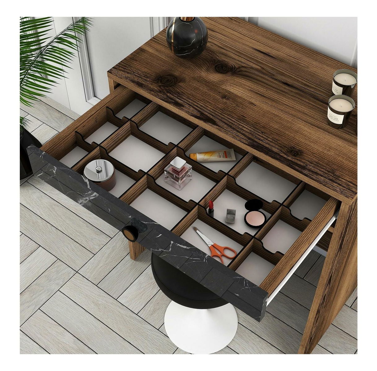 Toaletný stolík Logan 1 (čierny mramor + orech) (so zrkadlom)