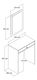hrúbka: 18 mm, veľkosť kozmetického stola: šírka: 70 cm, výška: 40 cm, hĺbka: 84,7 cm, veľkosť zrkadla: šírka: 51 cm, výška: 76,5 cm, hĺbka: 2 cm