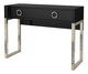 Toaletný stolík Loret (čierna + čierny lesk) s výškou 80 cm a hĺbkou 40 cm je ideálny pre dokonalé líčenie. Jeho elegantný minimalistický dizajn využíva moderné geometrické tvary a industriálne kovové prvky. Stolík má 4 praktické úložné priestory v podobe dvoch zásuviek, ktoré sa vám budú hodiť na ukladanie kozmetiky a iných potrebných vecí. Celkový vzhľad stolíku dotvárajú elegantné úchytky a čierna lesklá farba. Nohy sú v chrómovej farbe a majú výšku 61,2 cm. Rozmery zásuvky sú 8,6 x 47,1 x 33,3 cm (výška x šírka x hĺbka). Toaletný stolík Loret je skvelým doplnkom k vašej kozmetickej sade a zaručene vám uľahčí každodenné používanie.
