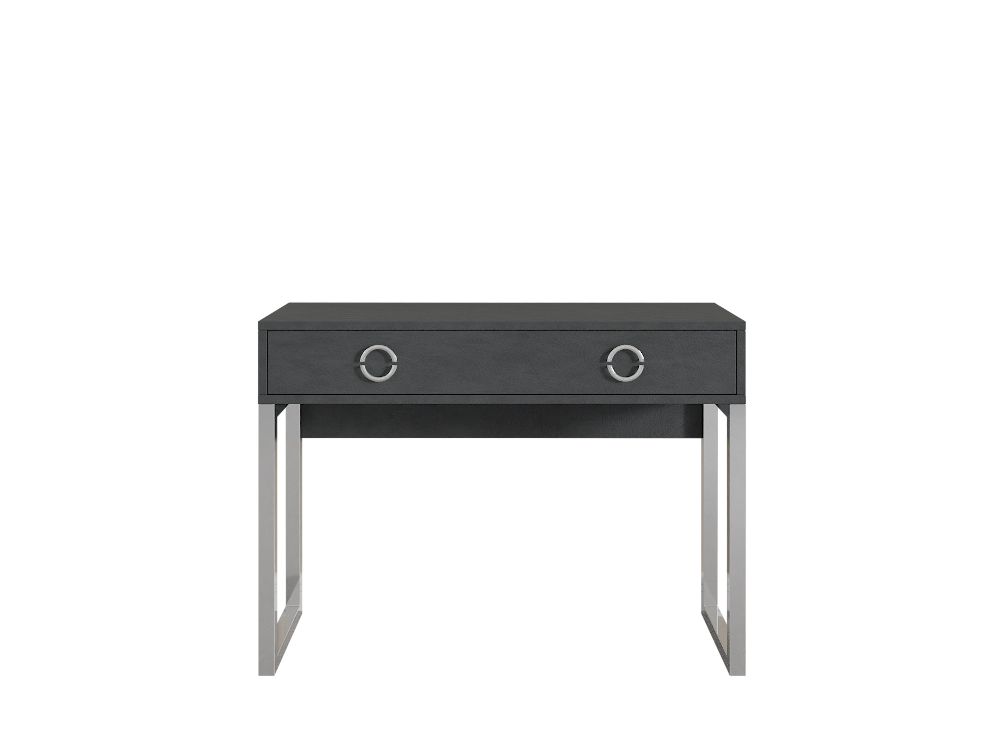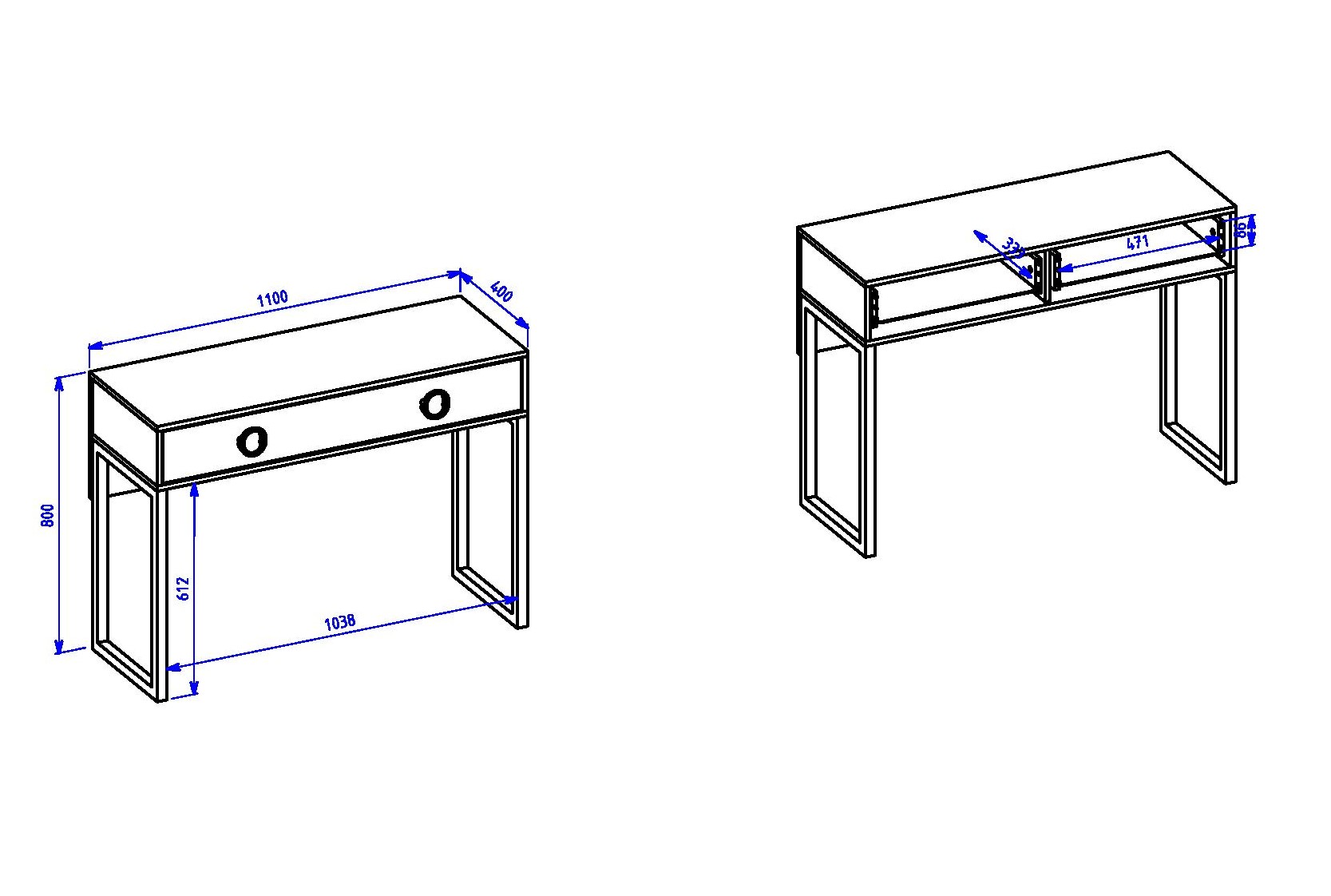 Elegantný minimalistický toaletný stolík Loret spája moderný dizajn geometrických tvarov s industriálnymi kovovými prvkami. Oceníte úložný priestor v podobe dvoch praktických zásuviek. Elegantné úchytky vyzdvihujú celkový zvhľad stolíka.