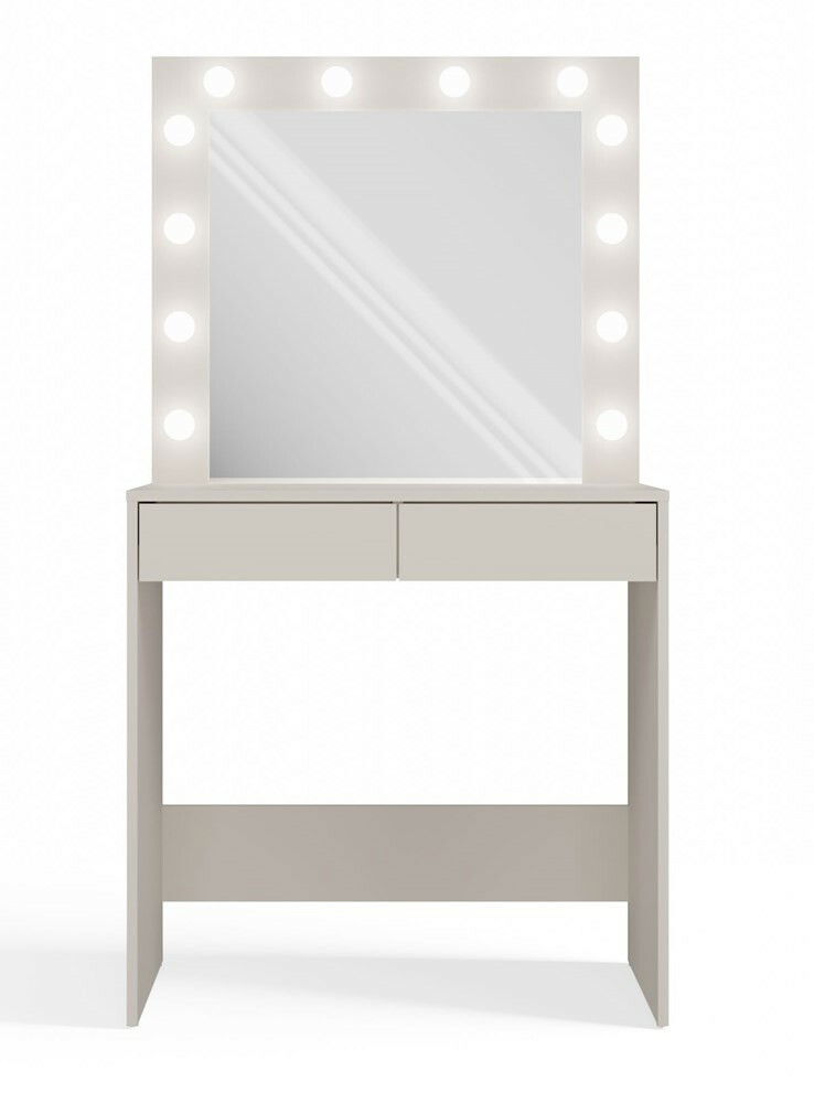 Toaletný stolík Micras 1 je dokonalým spojením elegancie a funkčnosti, ktorý sa stane ozdobou každého interiéru. Jeho moderný dizajn v jemnom odtieni kašmíru dodáva priestoru sofistikovanosť a štýlovosť. S dvoma priestrannými zásuvkami na bezpečné uskladnenie kozmetiky a bižutérie, ako aj s praktickým zrkadlom vybaveným energeticky úsporným LED osvetlením, je ideálny na každodenné používanie. Bezúchytové fronty zásuviek zaručujú pohodlné ovládanie a podčiarkujú moderný charakter nábytku. Tento toaletný stolík je skvelou voľbou pre tých, ktorí si cenia kvalitu a dizajn.