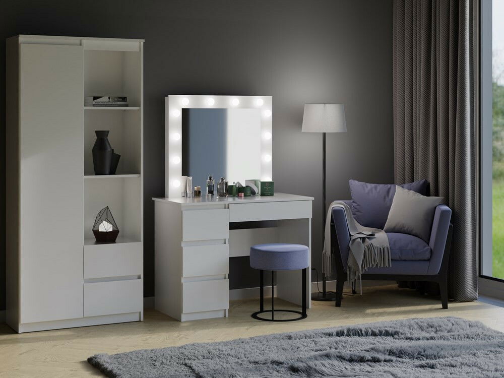 ZobraziťToaletný stolík Micras 2 v elegantnej bielej farbe je dokonalým spojením moderného dizajnu a praktickosti, ktorý obohatí každú spálňu či kozmetický kútik. Je vybavený štyrmi zásuvkami, ktoré poskytujú dostatok priestoru na uskladnenie kozmetiky a bižutérie, pričom bezúchytové fronty zaručujú pohodlné používanie. Osvetlenie LED s praktickým vypínačom zabezpečuje ideálne podmienky na líčenie a starostlivosť o pleť. Tento kvalitný nábytok je navrhnutý tak, aby spĺňal požiadavky moderného životného štýlu a dodal vášmu interiéru nádych elegancie.