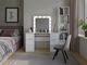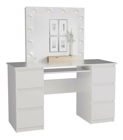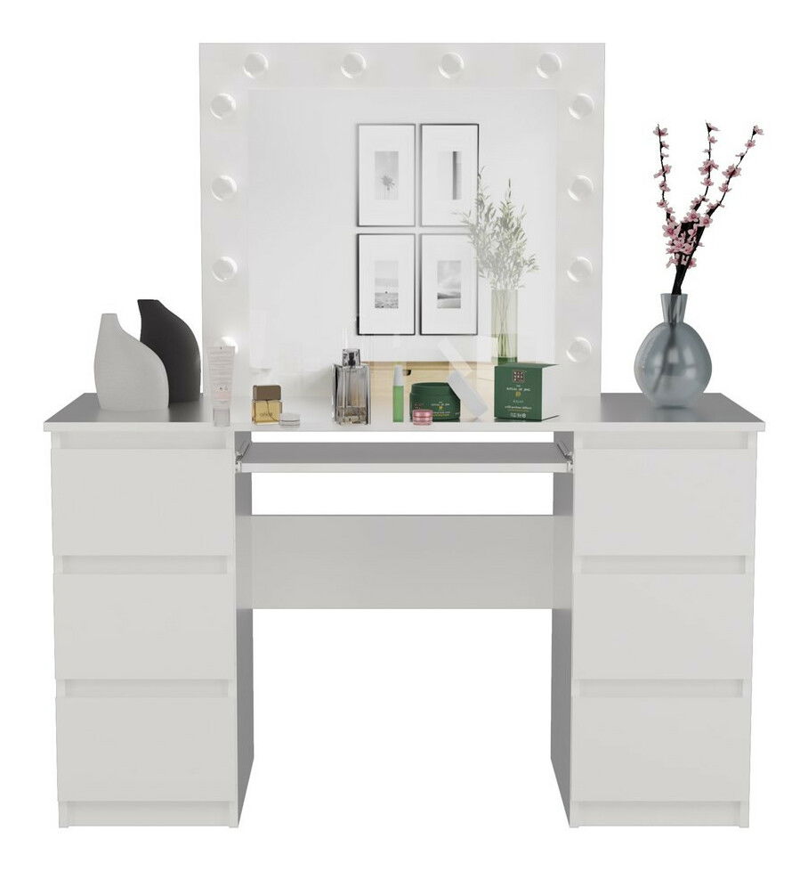 Toaletný stolík Micras 3 v elegantnej bielej matnej farbe je dokonalým spojením štýlu a funkčnosti, ktorý obohatí každú spálňu alebo kozmetický kútik. S jeho premyslenou konštrukciou a šiestimi priestrannými zásuvkami, ktoré sú vybavené bezúchytkovými frontami, ponúka pohodlné a bezpečné uskladnenie kozmetiky a bižutérie. Osvetlenie LED s praktickým vypínačom zabezpečuje ideálne podmienky na líčenie, zatiaľ čo moderný dizajn zaručuje, že sa tento nábytok stane skvostom vášho interiéru.