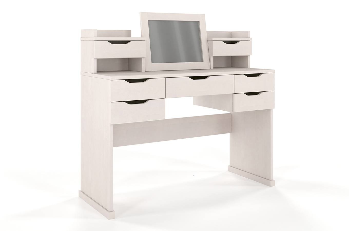 je dokonalý doplnok do spálne, ktorý si zamilujú hlavne dámy. Jednoduchý a elegantný stolík je vyrobený z bukového dreva a výborne zapadne do každého moderného interiéru.Súčasťou stolíka je aj , ktoré vám bude slúžiť najmä pri líčení. Všetko potrebné budete mať hneď poruke a prehľadne uložené. zabezpečuje dlhú životnosť stolíka a jednotlivé kusy sú odolné aj voči deformácií spôsobenej vlhkosťou. Zásuvky majú systém spomalenia pri dovieraní, takže sa zatvoria pomaly a bez buchnutia. , ktoré ho ochráni pred oderom a povrchovými škrabancami. Rozmery: výška: cca 120 cmšírka: 122 cmhĺbka: 52 cmrozmery zrkadla: 40,5 x 31 cm