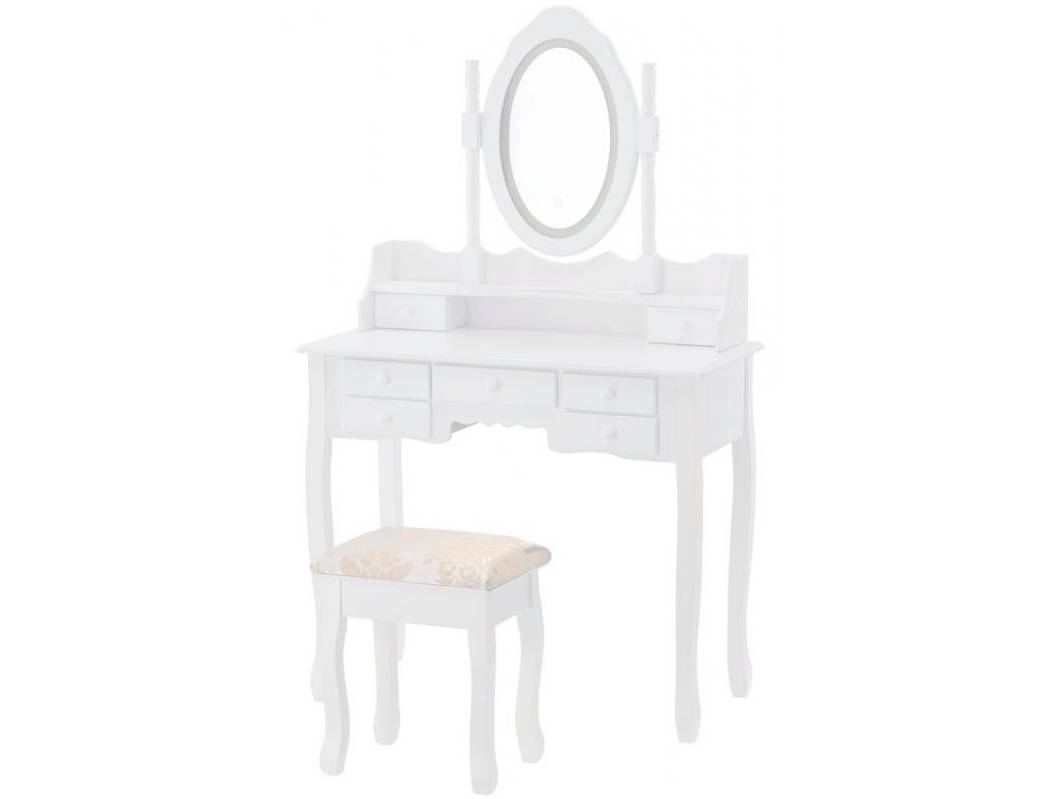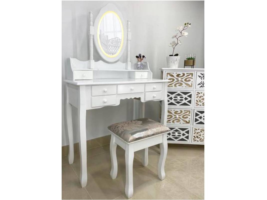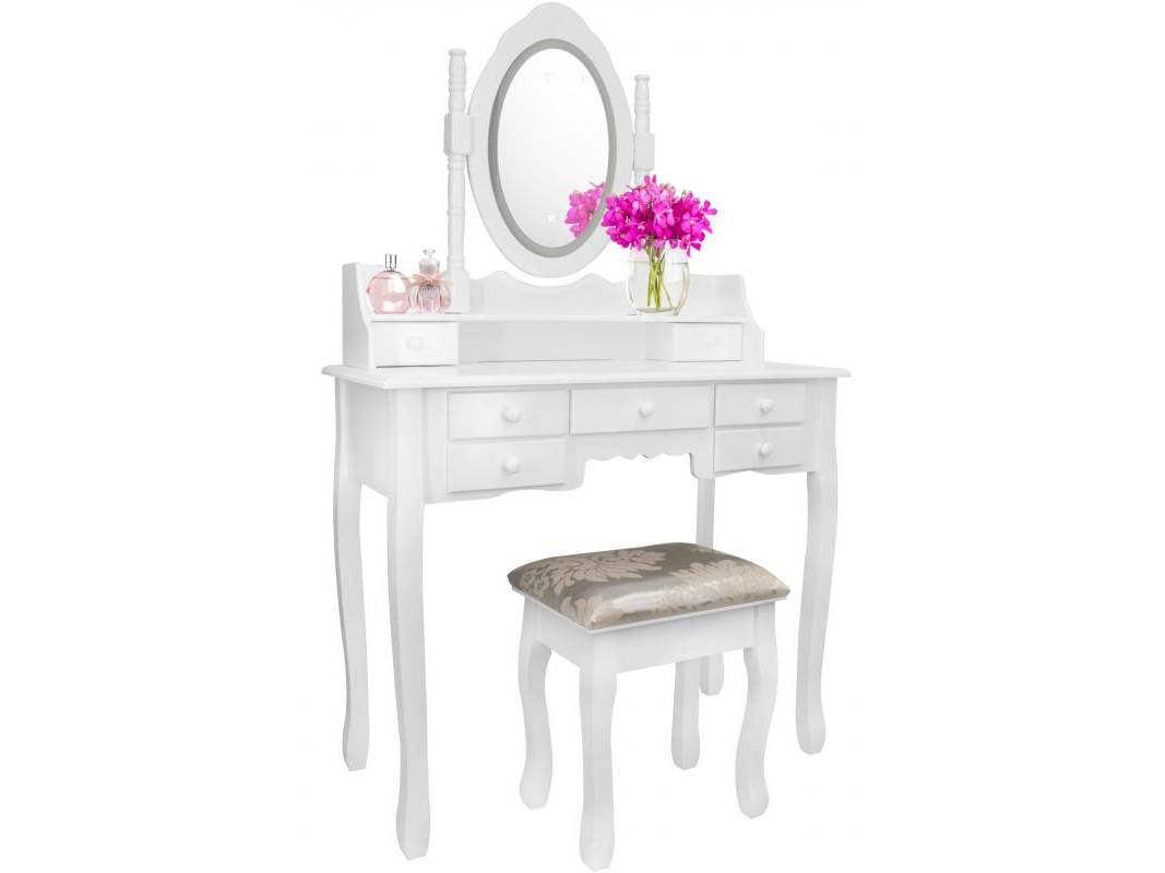 Toaletný stolík s taburetkou Pompadour (s LED osvetlením) (biela)