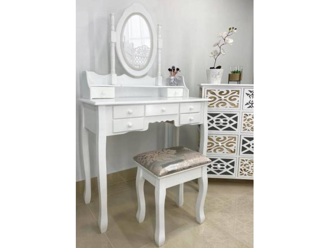 toaletný stolík, zrkadlo, čalúnená taburetka