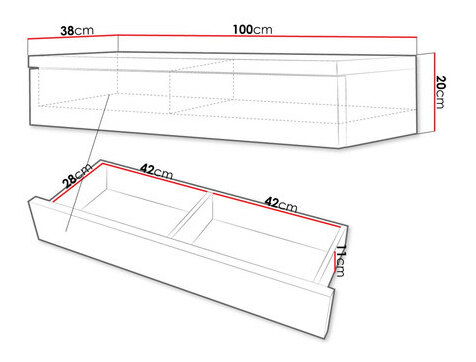 Korpus a predná časť: 32 mm hrubá drevotrieska, zadná časť nábytku je vyrobená z drevotriesky s hrúbkou 16 mm, hrana: ABS (viditeľné miesta), papier (neviditeľné miesta), guľôčkové vedenia s retardérom, žiadne rukoväte
