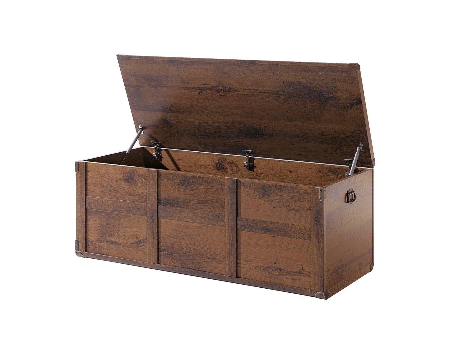Truhlica INDIANA JKUF 120 (Dub sutter) vám poskytuje dostatok miesta na uskladnenie vašich vecí. S výškou 47,5 cm a hĺbkou 49 cm je dostatočne veľká na to, aby sa zmestili veci akéhokoľvek veľkosti. Truhlica je vyrobená z kvalitného dreva a má krásny dubový povrch. Dubový sutter je navyše ďalším prvkom, ktorý pridáva truhlici na kráse a dokončuje jej vzhľad. S touto truhlicou môžete ľahko udržiavať poriadok v svojom dome alebo kancelárii a zároveň ju môžete použiť ako pekný doplnok do vašej izby. Svojimi rozmormi a kvalitným spracovaním je ideálna aj ako darček pre vašich blízkych.