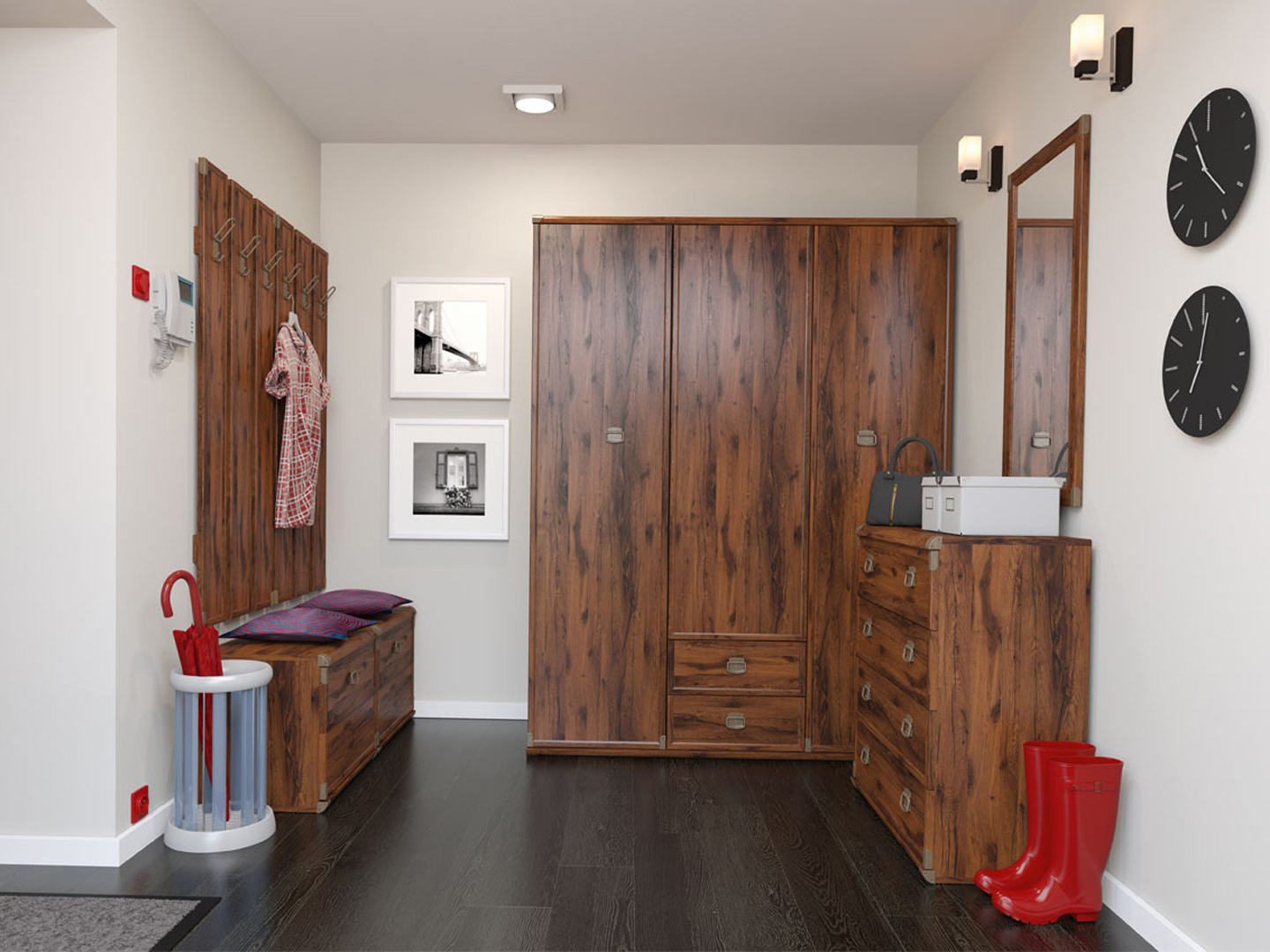 Dodajte vašim príbytkom atmosféru Divokého západu s jedinečným modelovým radom Indiana. Ocenia ju nielen milovníci prírody, ale potešíte ňou aj staršie deti. Hodí sa najmä do študentských, či detských izieb. Tento modelový rad sa bude pekne vynímať v izbách s drevenými podlahami a svetlejšími stenami. Horským chatám dodá osobitý westernový ráz. V modelovom rade nájdete krásne komody so zásuvkami, poličky a regály pre vašu zbierku mayoviek a hudby, pohodlnú jednolôžkovú alebo rozkladaciu posteľ, skrinky, stolíky a aj veľkú truhlicu pre všetky vaše poklady. Výrazným prvkom tohto nábytku sú okované rohy a kovové úchyty. Modelový rad Indiana ponúkame v týchto farebných prevedeniach: tmavší dub sutter, svetlejšia borovica antická a bledá borovica canyon. Pre všetkých milovníkov Divokého západu a prírody je Indiana to pravé.