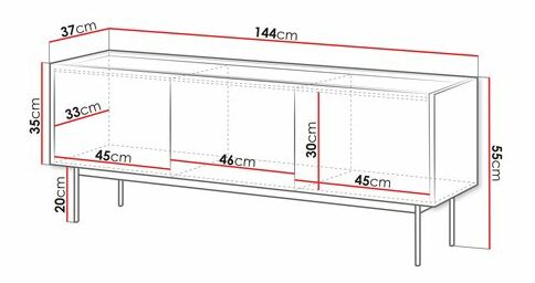 ZobraziťTV skrinka Corado CRTV144 do obývačky zaujme minimalistickým, no zároveň originálnym dizajnom. Ide o dokonalé riešenie na vyplnenie priestoru pod televízorom. Tri priestranné priehradky umožňujú uložiť množstvo príslušenstva, elektronických zariadení a iných predmetov. Veľká doska s vyčnievajúcimi čelami ponúka veľa možností usporiadania. Môžete na ňu umiestniť fotorámiky, kvety alebo suveníry z ciest. TV skrinka na nožičkách pôsobí dojmom sviežosti a ľahkosti. Vďaka subtílnym nožičkám ľahko udržíte čistotu pod nábytkom. TV skrinka nemá žiadne úchytky, čo jej dodáva na triede a elegancii. Dvere sa otvárajú pomocou predĺžených čel.
