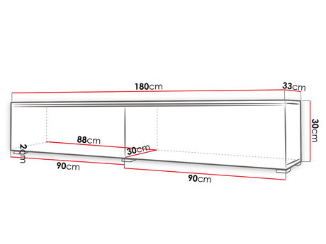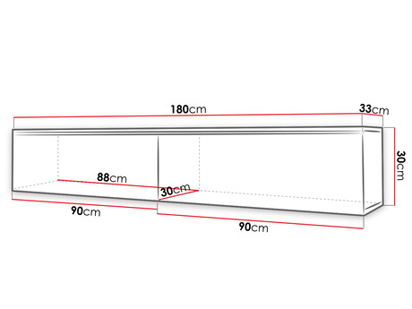 TV skrinka Dlana180 MDF štýlovo doplní priestor vašej obývačky. Môžete si ju dokonale prispôsobiť svojim preferenciám aranžovania. Môžete ju položiť na zem alebo zavesiť na stenu. Skrinka nemá žiadne úchytky, čo jej dodáva minimalistický vzhľad. Priestranné vnútro TV skrinky uľahčuje uloženie rôznych predmetov, od platní, cez káble, až po knihy. Všetky potrebné veci si tu nájdu svoje miesto a v obývačke bude poriadok.