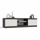 TV skrinka Musecalo 140 v modernom dizajne kombinuje elegantné farby antracit a biela, čím sa stáva ideálnym doplnkom do súčasných interiérov. S rozmermi 140 cm na šírku a 40 cm na hĺbku ponúka dostatok priestoru pre váš televízor a ďalšie zariadenia. Dve bočné skrinky poskytujú praktické úložisko na drobnosti, zatiaľ čo otvorená polica umožňuje jednoduchý prístup k elektronike a skryté vedenie káblov. Vyrobená z kvalitnej laminovanej drevotriesky, táto skrinka je nielen štýlová, ale aj funkčná, a skvele sa hodí do akéhokoľvek priestoru.