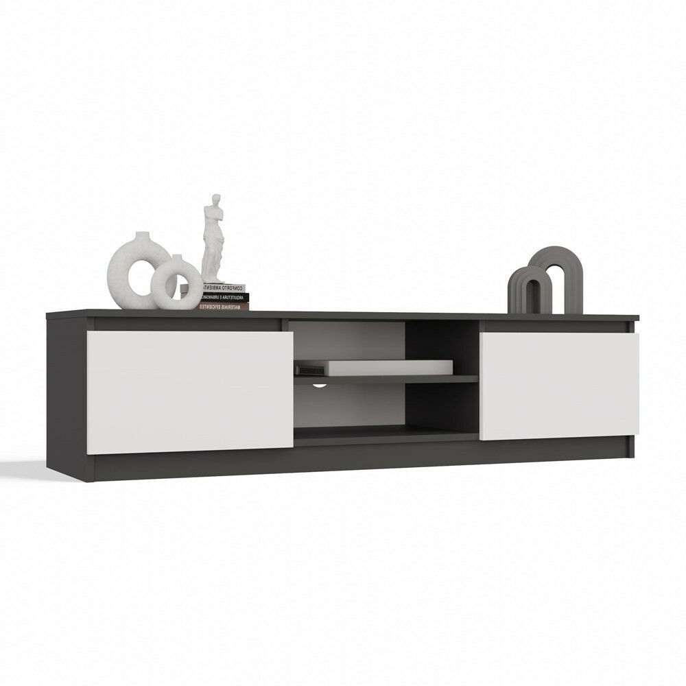 ZobraziťTV skrinka Musecalo 140 v modernom dizajne kombinuje elegantné farby antracit a biela, čím sa stáva ideálnym doplnkom do súčasných interiérov. S rozmermi 140 cm na šírku a 40 cm na hĺbku ponúka dostatok priestoru pre váš televízor a ďalšie zariadenia. Dve bočné skrinky poskytujú praktické úložisko na drobnosti, zatiaľ čo otvorená polica umožňuje jednoduchý prístup k elektronike a skryté vedenie káblov. Vyrobená z kvalitnej laminovanej drevotriesky, táto skrinka je nielen štýlová, ale aj funkčná, a skvele sa hodí do akéhokoľvek priestoru.