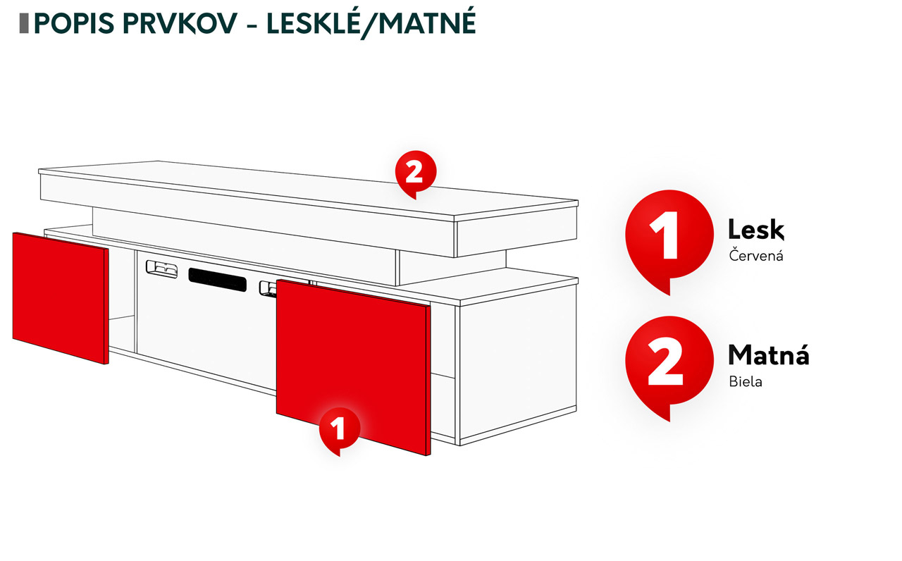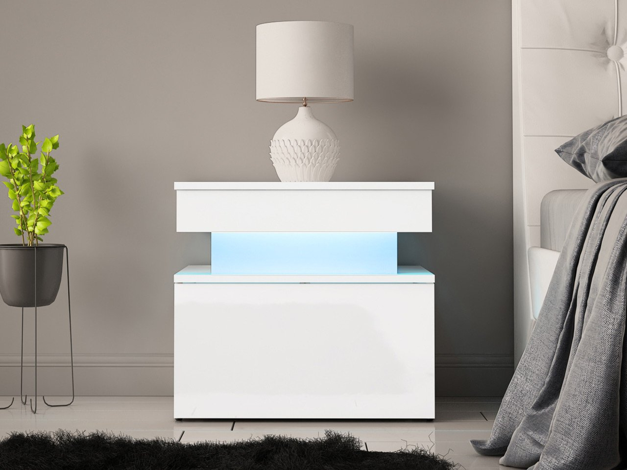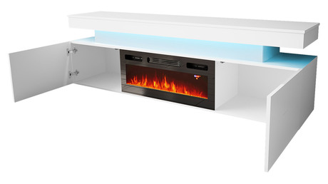 TV skrinka s krbom Lesteralo EF 2D 190 (biela + lesk biely) (s modrým LED osvetlením)