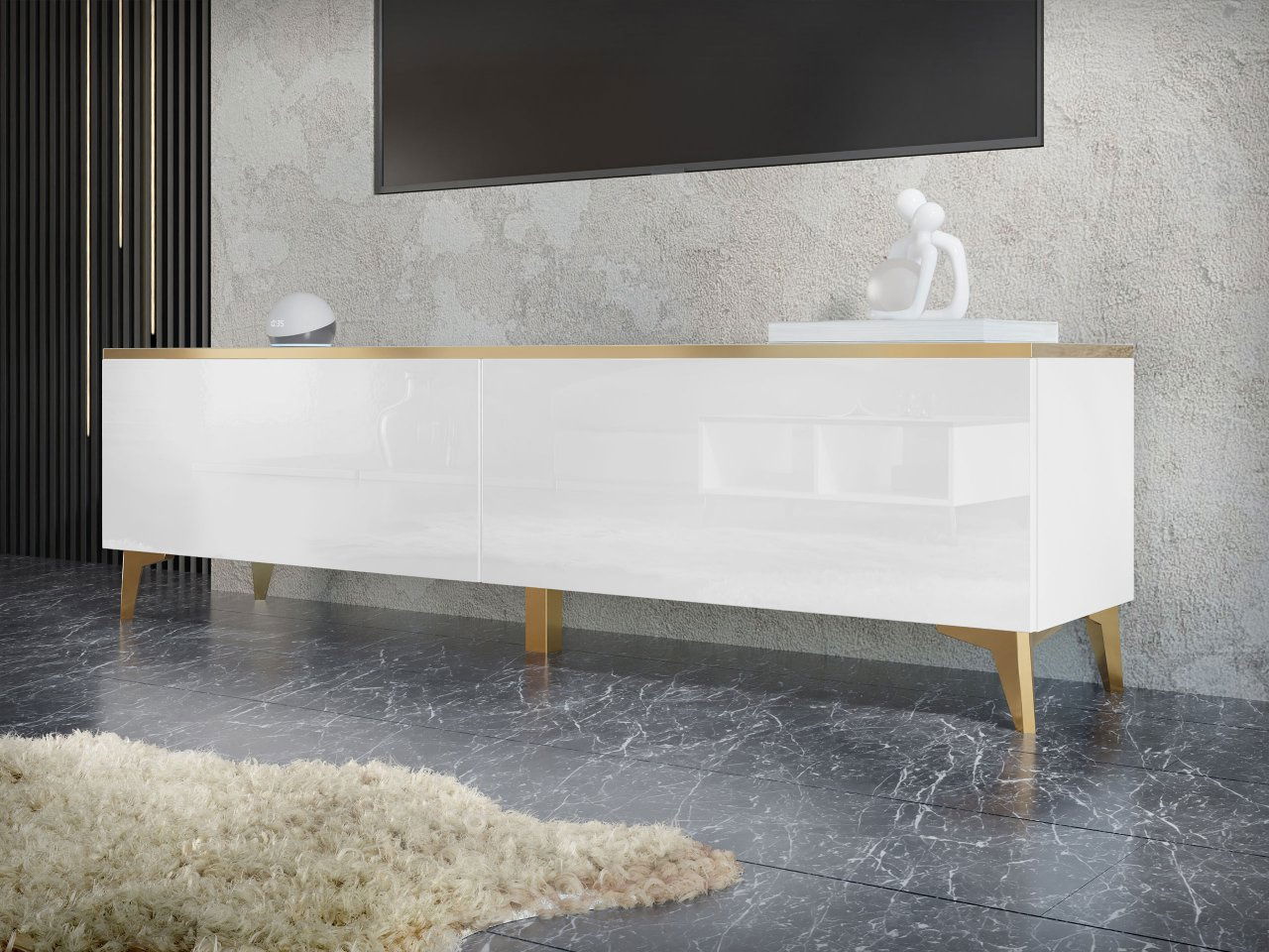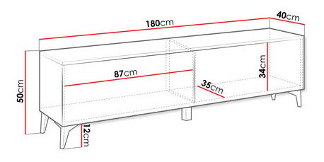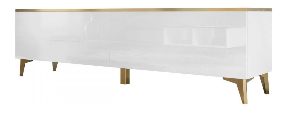 Tv skrinka/stolík je ideálnou voľbou pre tých, ktorí hľadajú pohodlie a štýl. Objavte očarujúcu eleganciu, ktorú ponúka moderná 2D TV skrinka Untra . Jednoduchý tvar s oslnivými doplnkami. Ide o model, ktorý sa dokonale hodí k súčasným aranžmánom. Lesk so zlatými prvkami je pôsobivý. Prezentovaný typ bude výborným základom pre televízor, audiovizuálnu techniku a drobné dekorácie. Moderný dizajn zdôrazňujú aj chýbajúce úchytky. Ďalšou výhodou TV skrinky na nožičkách je systém otvárania "PUSH TO OPEN". Vyššia poloha tohto kusu nábytku uľahčuje udržiavanie poriadku na podlahe a dodáva interiéru ľahkosť a jemnosť. Rozmery: šírka: 180 cm, výška: 50 cm, hĺbka: 40 cm Prevedenie: korpus: laminovaná doska hrúbky 16 mm, čelá: lesklá MDF doska, hrúbka 18 mm, PVC okraj, zadná stena z HDF dosky, nohy: plast zlatej farby, žiadne rukoväte, GTV pánty, dvierka sa vyklápajú dolu, systém otvárania "PUSH TO OPEN". Záruka: 24 mesiacov
