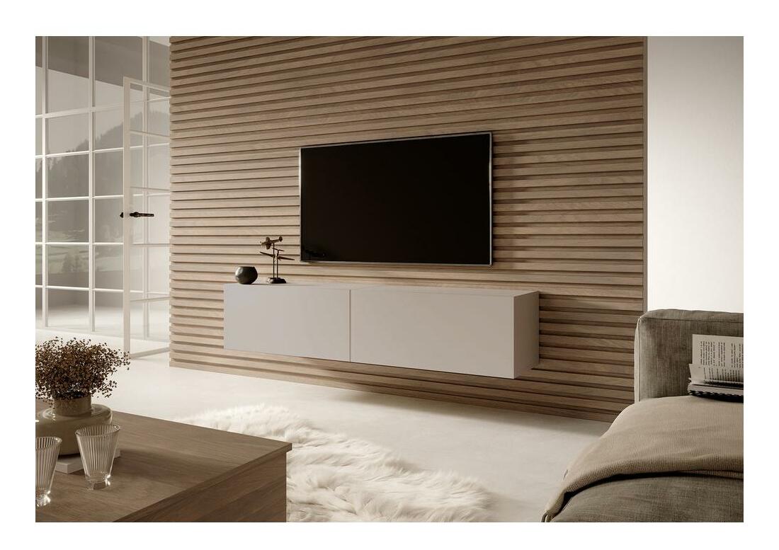 Snívate o obývačke zariadenej v glamour štýle? S TV skrinkou bude váš interiér vyzerať ako z časopisu o interiérovom dizajne. Skrinka má jednoduchý tvar, vďaka ktorému sa hodí do každého interiéru. Vďaka tomu celá vyzerá veľmi štýlovo a úspešne sa stane ukážkou miestnosti. Výhodou skrinky je jej kapacita - dve uzamykateľné skrinky úspešne ukryjú akékoľvek konzolové hry, prídavné káble alebo iné drobnosti, ktorým zvyčajne v miestnosti chýba miesto. Podrobnosti o produkte: skrinka je vyrobená z 16mm laminovanej dosky, ktorá je odolná proti vlhkosti a poškriabaniu, čo zaisťuje dlhé používanie. Čelá skrinky sa otvárajú smerom nadol. Skrinka je závesná, takže pod ňou ľahkou udržíte čistotu. Šírka skrinky: 140 cm.